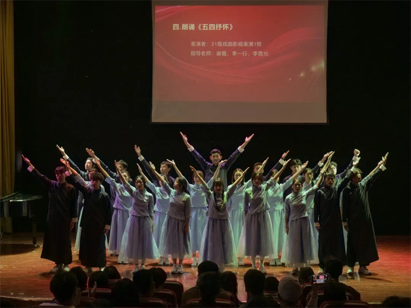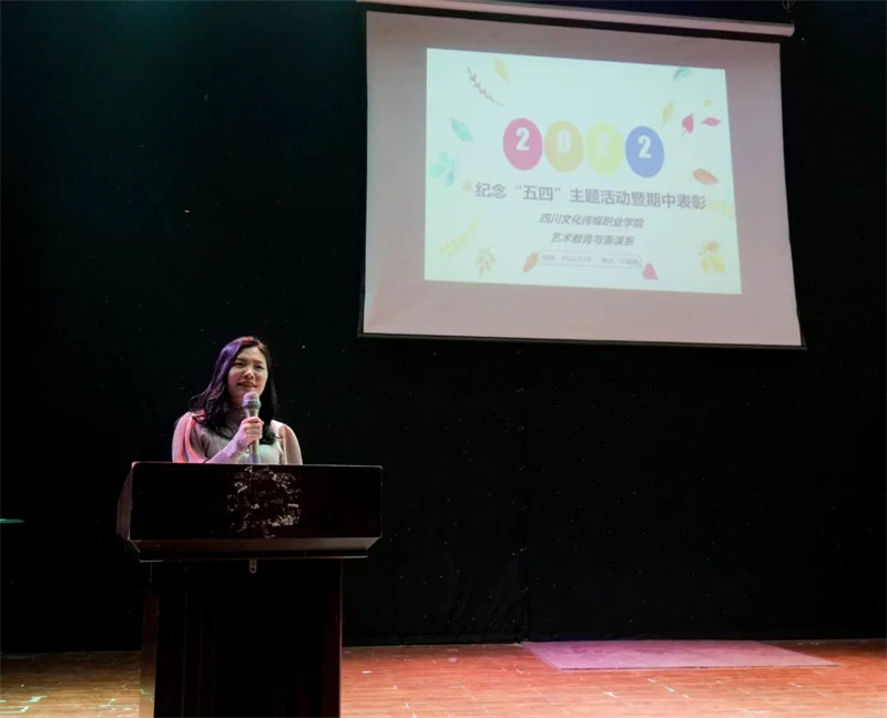 为进一步传承红色基因,强化课程思政,增强广大师生爱党爱国的意识和情感,5月19日下午,由传媒艺术学院艺术教育与表演系党支部主办、音乐教育教研室承办的“青春献礼二十大,强国有我征程”系列活动之纪念五四爱国运动音乐会在四川文化传媒职业学院崇州校区小剧场举行。学院党委书记周世伟教授、传媒艺术学院院长彭代明教授、传媒艺术学院副院长、党总支书记何柳副教授参加了此次活动。艺术教育与表演系师生代表100余人观摩了演出。