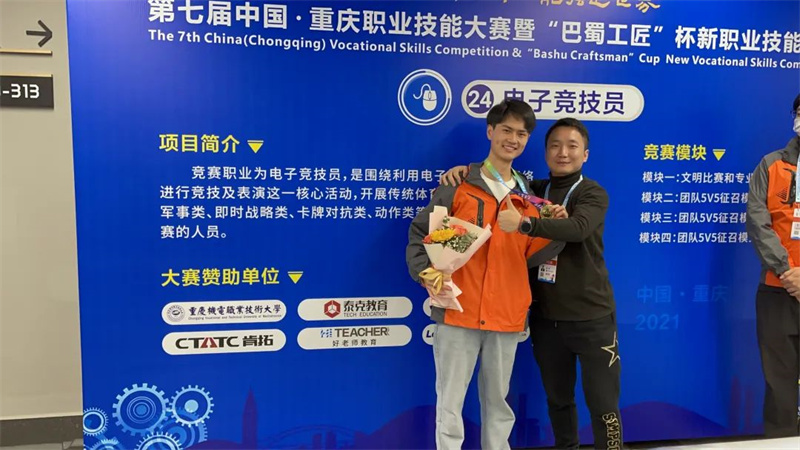 去年10月,谯山带领文传电竞队参加由重庆市人民政府主办的第七届中国·重庆职业技能大赛暨“巴蜀工匠”杯新职业技能大赛并获得了电子竞技员项目三等奖。在比赛期间,谯山注意到,包括健康照护师、供应链管理师、电子竞技员等在内的新职业越来越受到市场和社会的青睐,相应的对于这些职业人员的综合素养要求也越来越高。