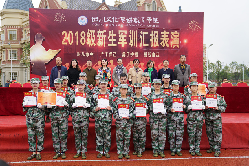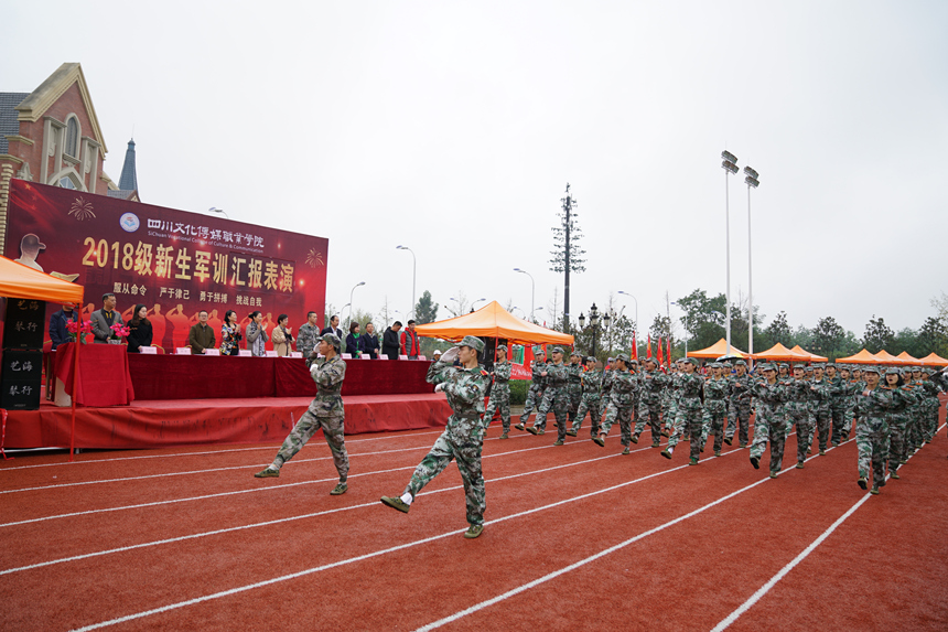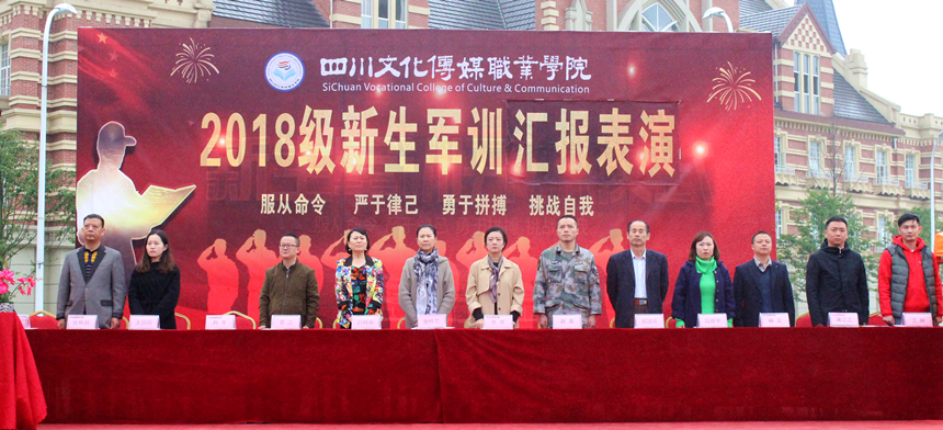 近日,四川文化传媒职业学院绵竹校区2018级新生军训汇报表演在运动场隆重举行,出席本次活动的学院领导有执行院长罗琴、党委书记谢桂兰、副院长吕晓南、院长助理罗江以及各系部领导,学院2018级全体师生参加了汇报表演。
