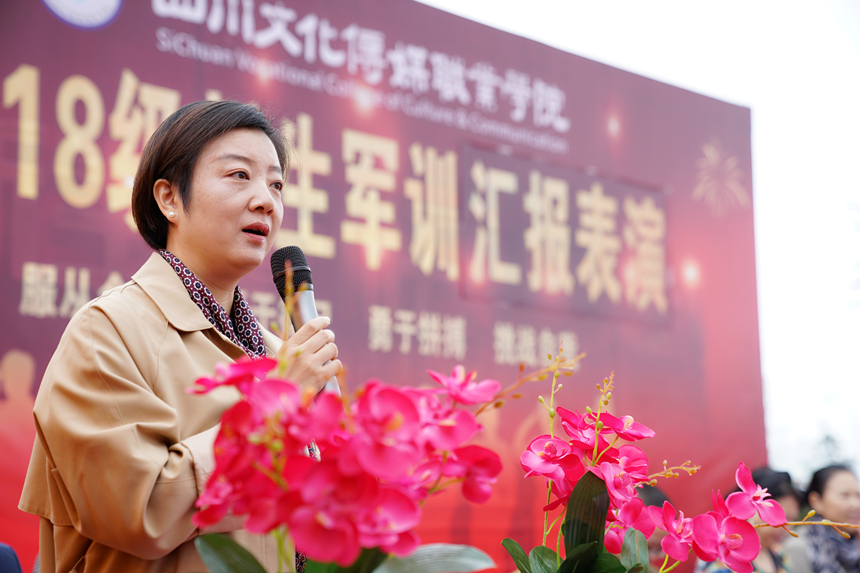 汇报表演上,罗琴院长首先发表了讲话。她讲到,军训是我们增长才干的一次机会,需要我们融入其中、亲身体验,领悟其中的团结协作精神,让我们学会军人雷厉风行的作风。她指出,军训是开启大学生活的第一课,经过军训的洗礼,可以培养大家不怕苦、不怕累的艰苦奋斗精神,为日后的学习与生活打下坚实的基础。