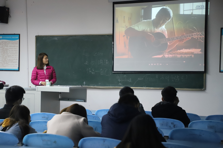 讲座开端,王婷老师由两段视频与大家展开互动并导入话题,视频《致匠心》认为一个人出什么样的作品和其天份多少并没有太大联系,写作就是与人沟通,而作品就是自己。由一句“我得先成就它,它才有可能成就我”道出要想有所成就,就要先付出的重要性,之所以无数次的固执和坚持、劳作,是为了对完美的不懈追求,也因此“我成就了它,它也成就了我。”