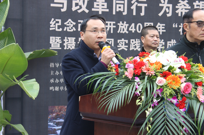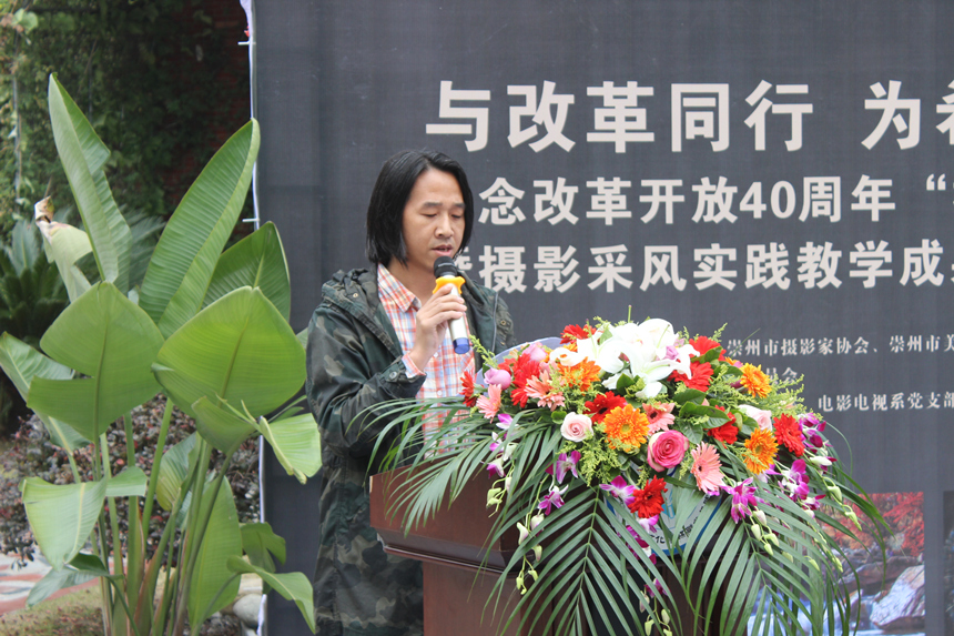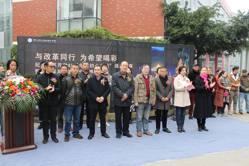 11月22日,由崇州市文化艺术联合会、崇州市摄影家协会、崇州市美术家协会、崇州市罨画池博物馆指导,由四川文化传媒职业学院党委主办的“与改革同行、为希望喝彩”纪念改革开放40周年“初心之旅”摄影大赛暨摄影采风实践教学成果展开幕式如期隆重举行。崇州市摄影家协会副主席左青云、副主席郭迎伟、秘书长刘朝伟、副秘书长袁建;崇州市美术家协会主席童春云、副主席王亚平;学院执行院长罗琴副教授、党委书记谢桂兰副教授及各系部领导应邀参加了本次展览开幕式,开幕式由艺术设计系党支部书记、副系主任于兴财主持。