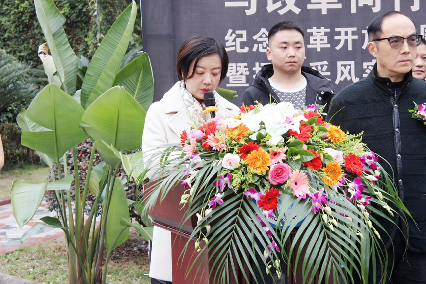 首先,学院执行院长罗琴致欢迎辞,“新中国的成立,使我们的国家彻底摆脱了被压迫的境地,从此世界东方沉睡多年的狮子觉醒,但步履维艰、过程坎坷,40年的征程,中华民族以崭新的姿态重新屹立于世界民族之林;40年的沧桑巨变,40年的流金岁月。”罗琴院长希望崇州市各级领导一如既往地关心和支持四川文化传媒职业学院教育事业的发展,衷心祝愿本次展览取得圆满成功。