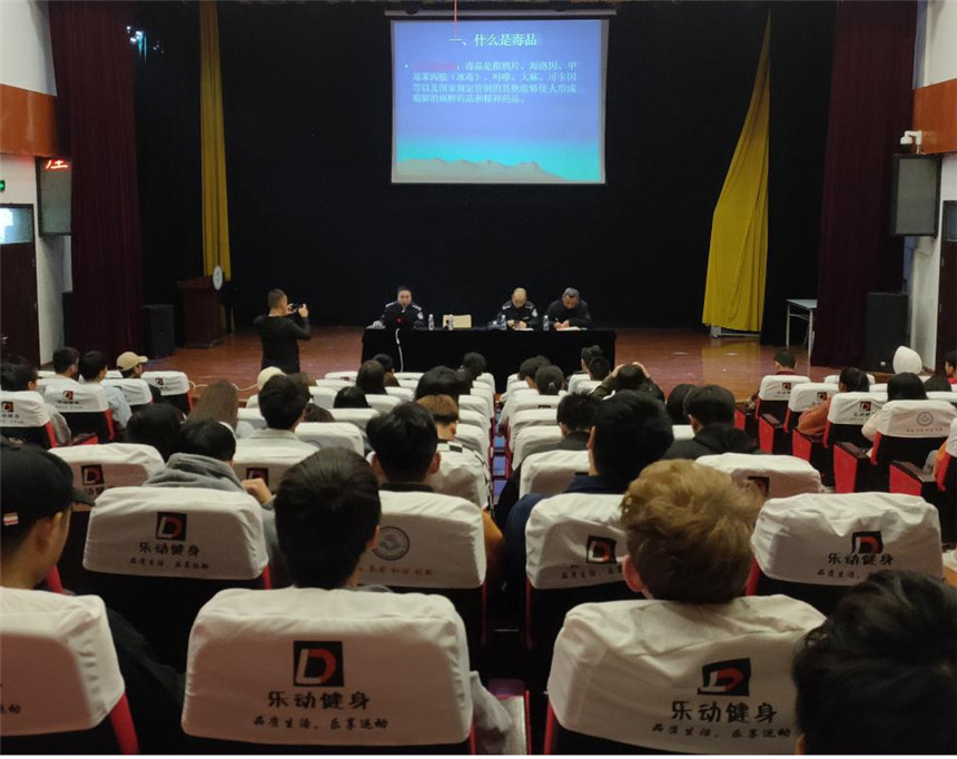 充分认识学校毒品预防教育工作的重要意义,崇州市公安局送法进校园,开展“青春无悔· 健康人生· 爱我中华”的禁毒宣传教育主题讲座。通过禁毒宣传教育讲座,听取毒品防范知识的讲解、观看禁毒音像视频、发放禁毒宣传资料和设置禁毒宣传展板等方式,让学生了解毒品、防范毒品,让学生加深印象,自觉抵制,营造以禁毒教育为主题的氛围。