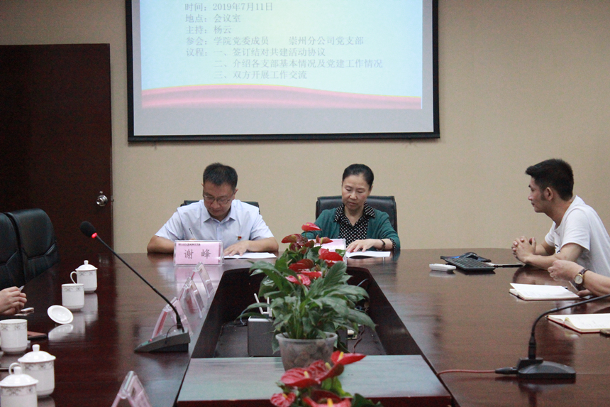 会议初期,学院党委书记谢桂兰介绍了学院党组织构架,并对今后的“党建和创”提出期望。她强调,“党建和创”对双方的党建工作具有重要意义,通过支部共建的形式开展活动,有利于双方发挥各自党建资源和经验优势,互帮互助,增强党建工作能力和水平,推动支部建设的不断加强。