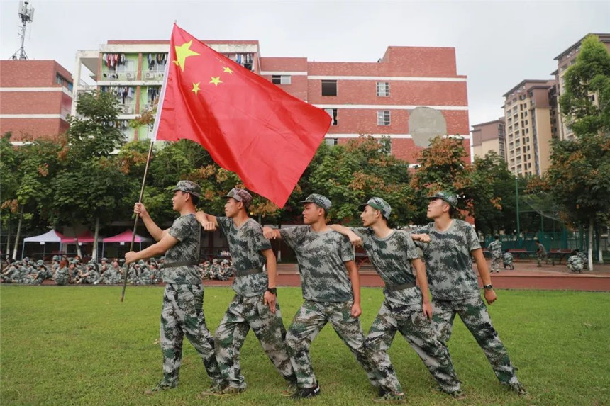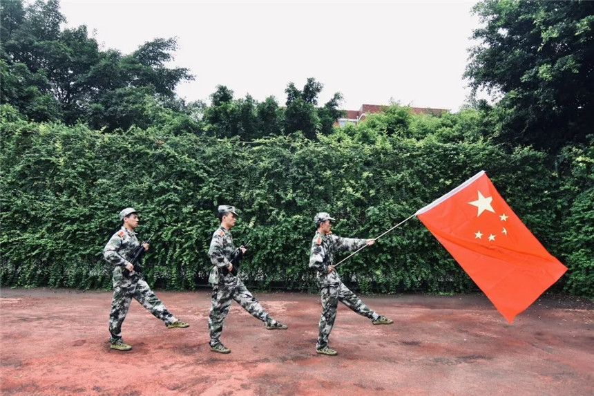 高中时,每周的星期一都会举行升旗仪式,每当看到国旗护卫队将国旗徐徐升起时,心中不免有些羡慕,羡慕那一身帅气的军装,也羡慕他们那份作为护旗手的责任感与使命感。我深知今天的幸福生活来之不易,是祖国为我们撑起了这片天,让我们这些羽翼未丰的雏鹰能够有成长的时间与空间。大学军训,我如愿的成为了一名护旗手,虽然训练的日子很苦,但是我和国旗的故事有了新的开始。