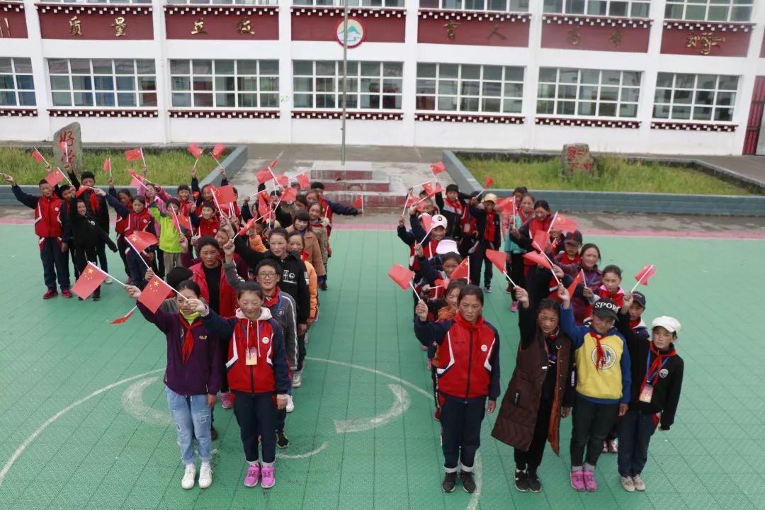 为庆祝新中国成立七十周年的到来,中心校的孩子们在操场上摆了一个大大的“70”,以表达对祖国生日的祝贺,孩子们挥动着手中的国旗,脸上洋溢着欢乐的笑容,对着镜头大喊:“祖国生日快乐!”或许他们从未走出大山,只在学校里看过升国旗,不知道外面的世界是怎样的,不知道在北京天安门上升国旗将会是一种怎样的体验。我们坚信,有了四川文化传媒职业学院长期的关注与支持和地方领导的不懈努力,脱贫致富一定会提前实现,孩子们也会早早的走出大山,到外面的世界见识一番。