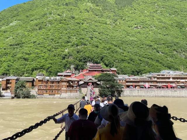在泸定桥上,全体成员追忆铁索链承载的革命精神。泸定桥,一座跨越激流的桥,一座飞跃峡谷的桥,一座被新中国曙光照亮千秋永存的桥。在建党一百周年之际,这座桥也承载了更加深厚的时代意义。班主任讲解员向大家讲述着这座拥有300多年历史的铁索桥故事。当年红军一昼夜急行120公里赶到泸定桥,创造了世界步兵行军史上的奇迹。胡耀邦总书记在泸定桥题词 “飞身可夺天堑,健步定攀高峰”。