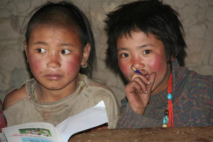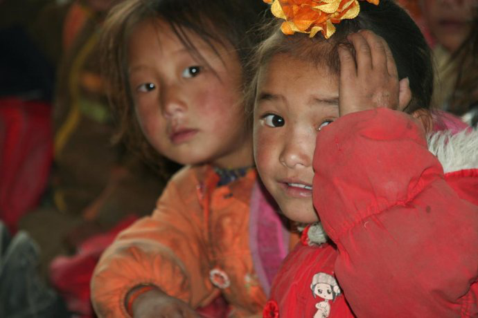 向查加部落村小的孩子们