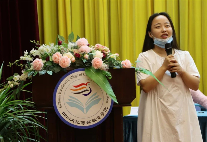 教师代表杨雅婷老师表示三年后的今天看到了大家的成长和收获,希望大家永远记住母校四川文化传媒职业学院。