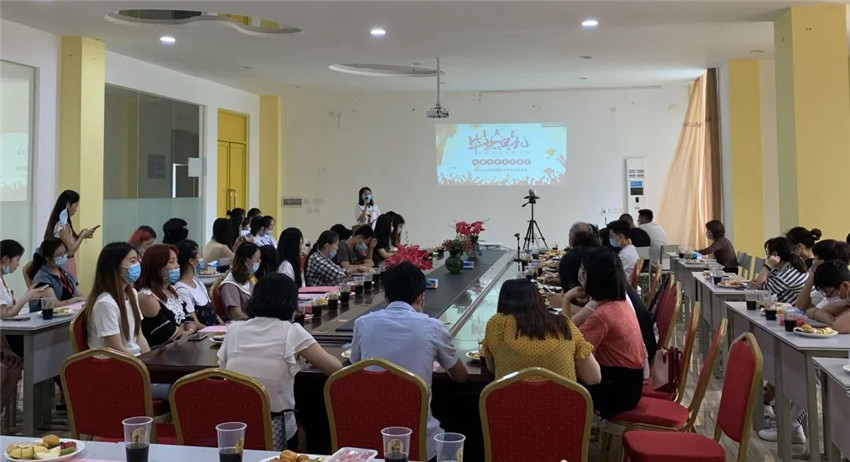 6月22日学前教育系毕业生茶话会以视频的形式拉开了帷幕,投影仪上播放着一张张充满回忆的照片,上面写满了记忆的点滴,满满的回忆映入脑海。