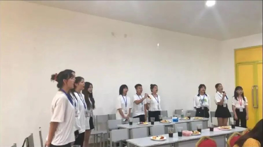 学弟学妹们齐唱《凤凰花开的路口》欢送学长学姐,时光的河入海流,终于我们分头走,没有哪个港口,是永远的停留,脑海之中有一个凤凰花开的路口,有我最珍贵的朋友,几度花开花落,有时快乐,有时落寞,很欣慰,生命某段时刻,曾一起度过……
