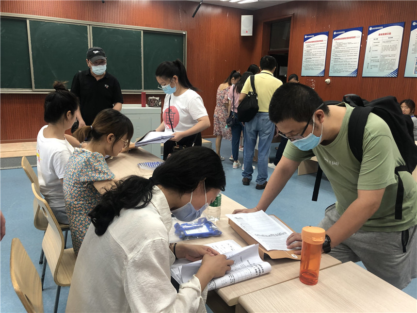 一大早,考务人员分别到达各校区考点,签到并领取试卷。