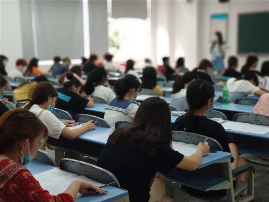 考生们精神面貌较好,全程佩戴口罩,座位保持间距,自觉遵守考试秩序。