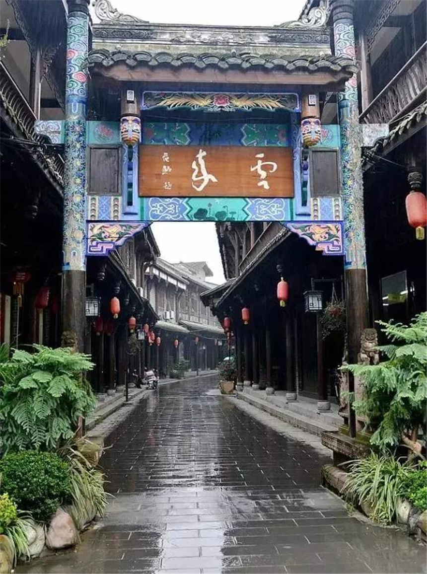 它坐落于崇州城西北25公里的凤栖山下,毗邻青城后山和九龙山。古镇水系发达,地下水丰富,石板路两侧及屋前院后,常年清水不断,因而有“川西水乡”之名、“青城后花园”之称。