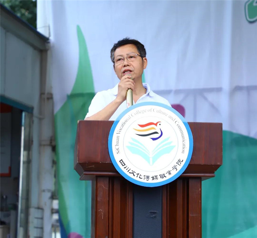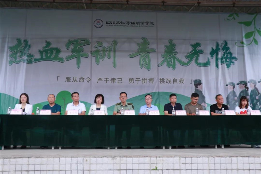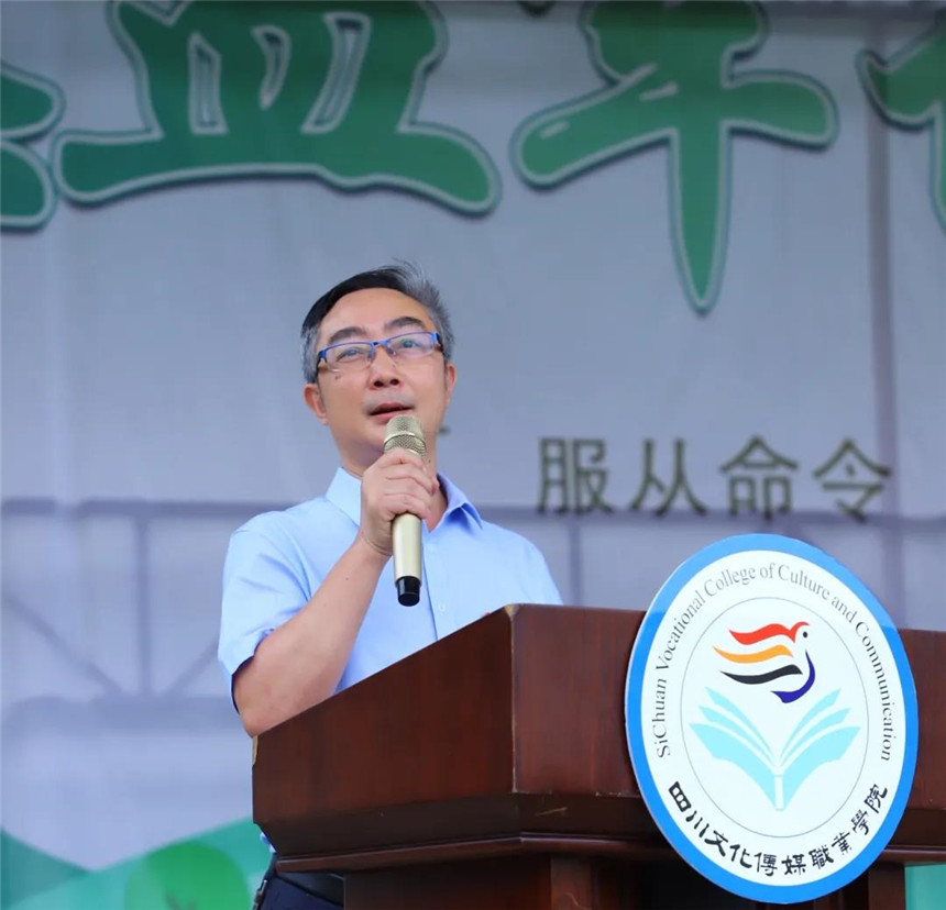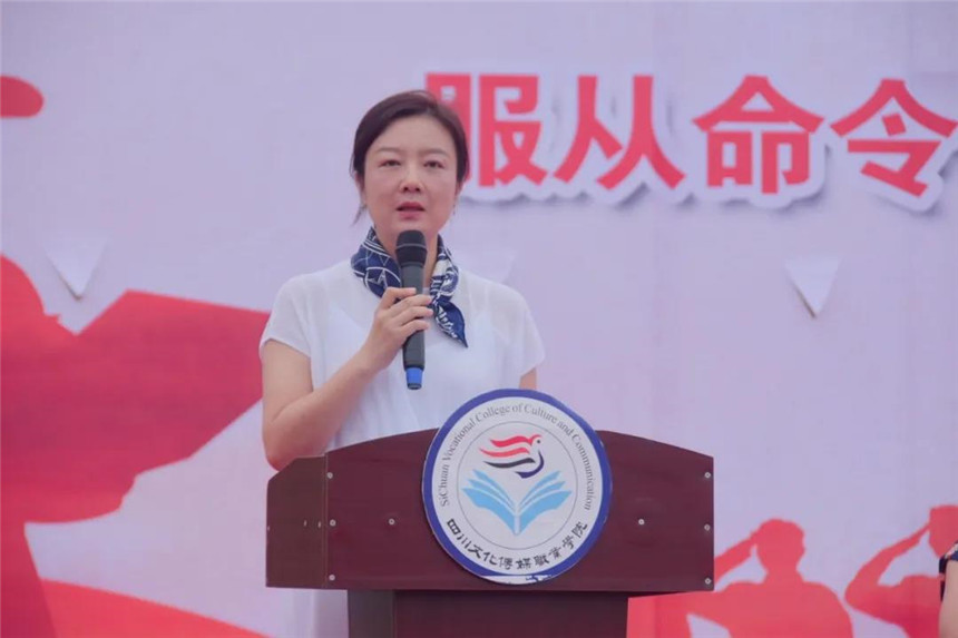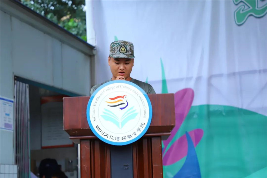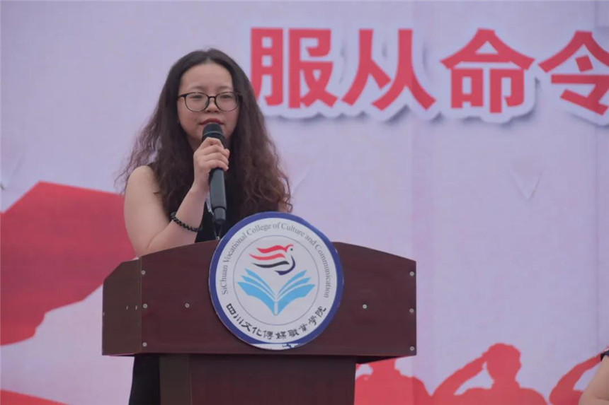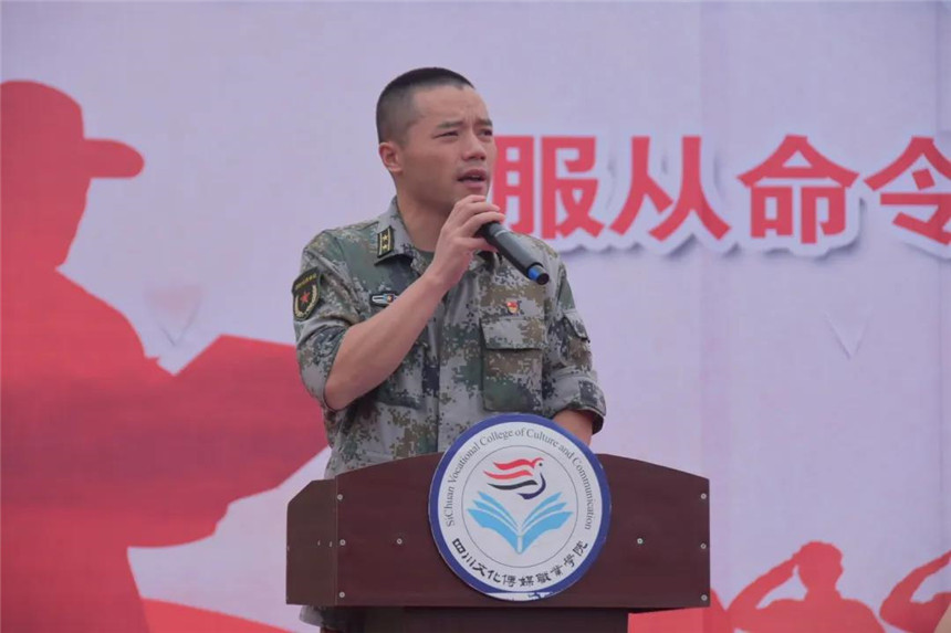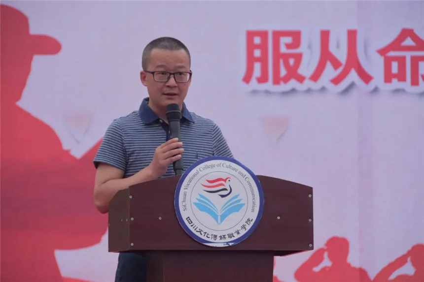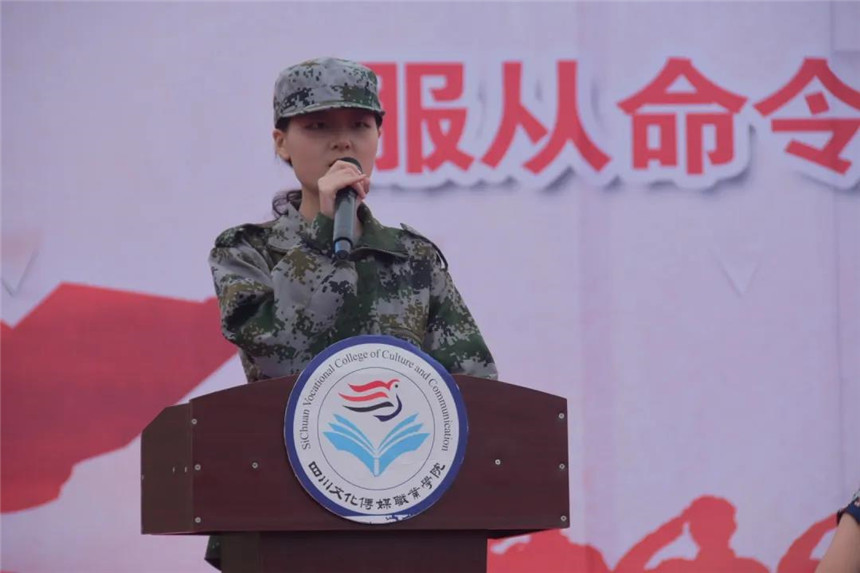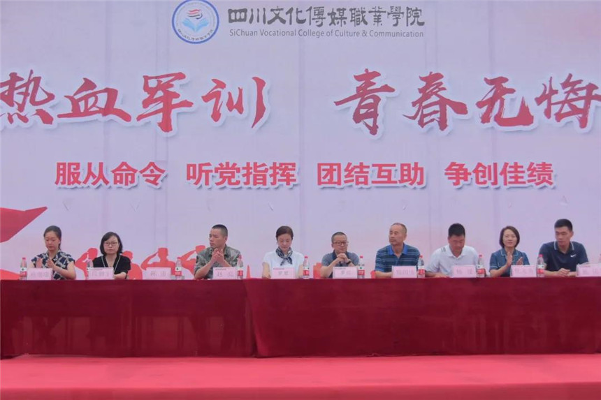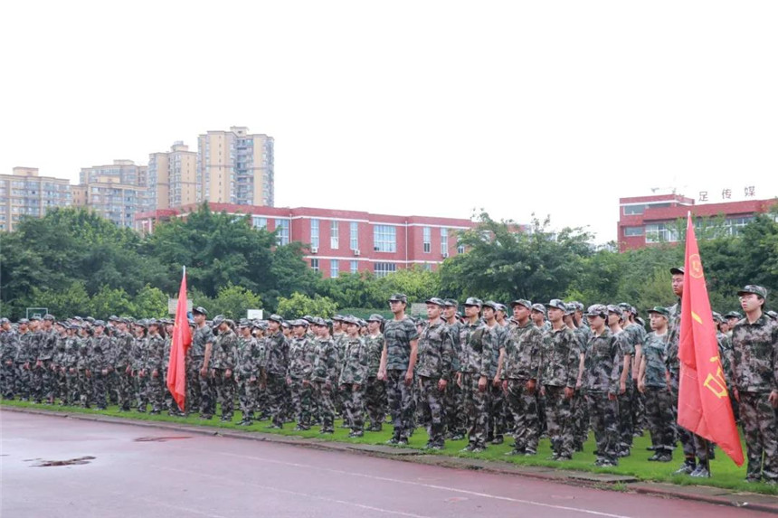 8月30日上午9:30,四川文化传媒职业学院举行2020级新生军训动员大会,崇州、绵竹两校区同步进行。