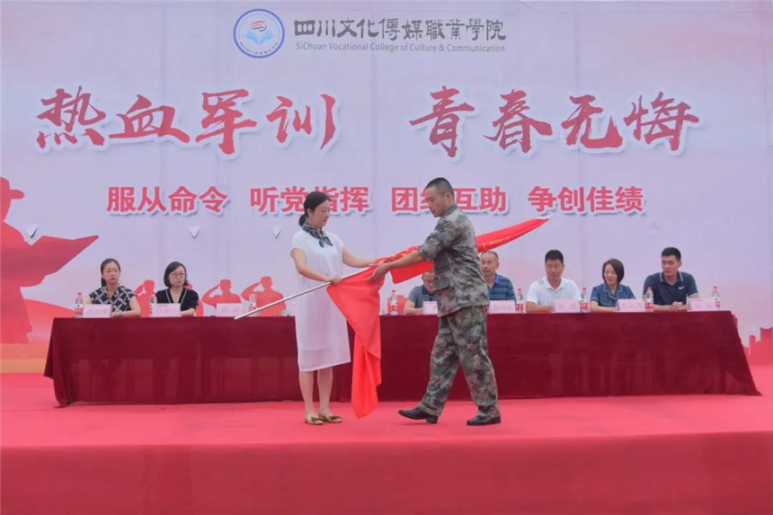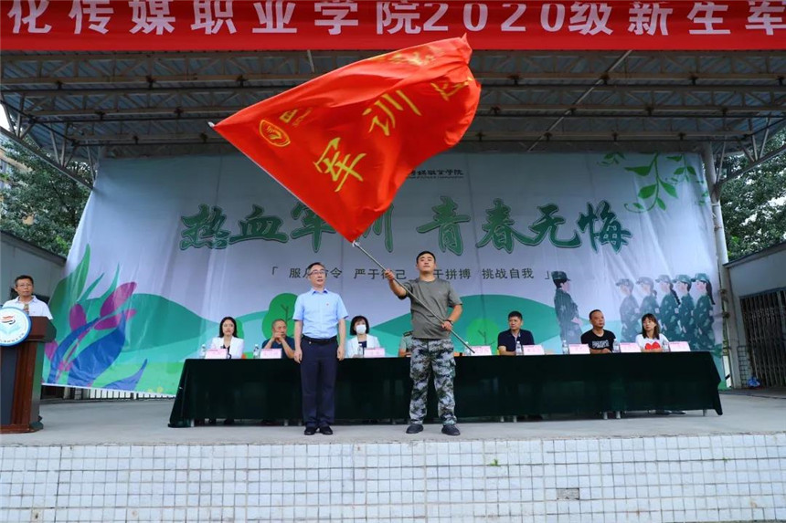 随后,执行院长罗琴向军训团授旗,团旗迎风飘扬、鼓舞人心,年轻的队伍将用饱满的精神和坚韧的毅力,迎接军训的磨练和洗礼。