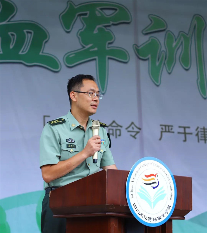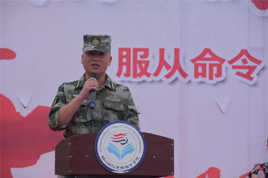 接着,崇州市人武部部长曾国文向全体教官提出三点要求:一是要科学组训,严格按照学院要求、严格按照军训大纲的规定,科学严密组织训练;二是要文明施训,在军训过程中,不仅要把过硬的军事技能教给同学们,更重要的是要把部队好的传统、好的作风、好的形象展现给同学们;三是要谦虚好学,学习学院严谨治学的学习态度,促进我们的军训工作。