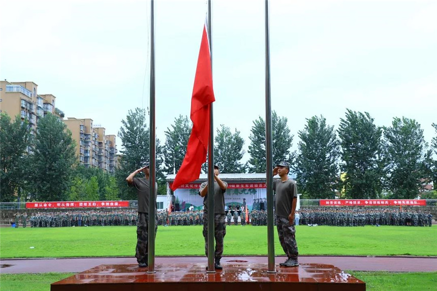 嘹亮的国歌奏响,军训动员大会正式拉开帷幕。