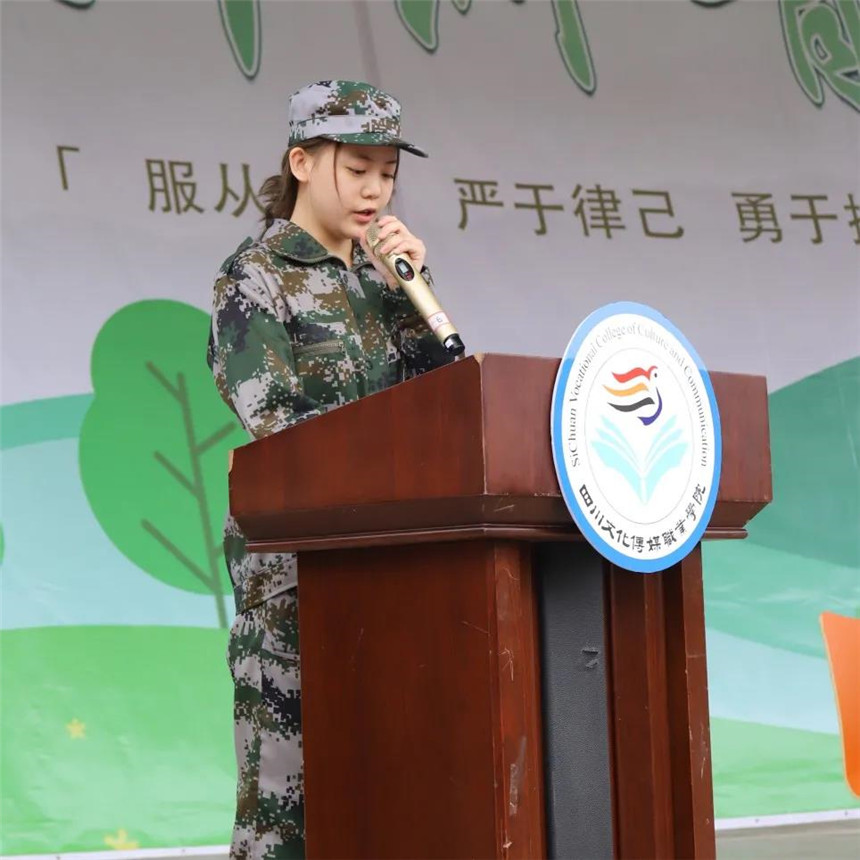 2020级新生代表岳雪瑶讲到,我们是新一代的接班人和开拓者,我们肩负的,是时代赋予我们的责任和使命。新的大学生活已悄然而至,相信在3年的学习生活里,我们的各方面都会取得可观的进步。在接下来的军训生活中,我们会以良好的精神面貌,全新的精神状态,投入新的学习。为班级、学院增光添彩。军训期间一切行动听指挥,服从军训教官管理,虚心向教官学习。同时严格训练,认真完成规定的军训任务。向社会,向学校,向教官、向老师交上一份满意的答卷。