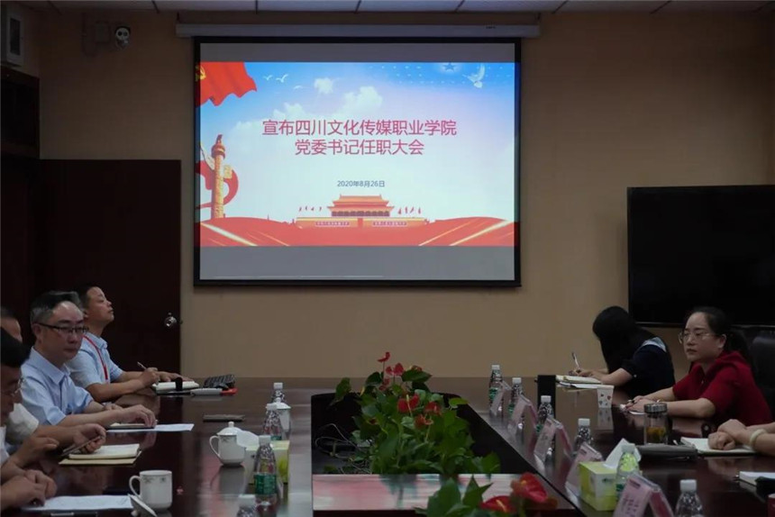 8月26日上午,宣布四川文化传媒职业学院党委书记任职大会在学院综合楼会议室举行。四川省委教育工委副书记、教育厅党组成员李国贵,四川省委教育工委、教育厅干部人才处处长谢亮冯,希望教育集团教管委副主任孟兆怀,四川文化传媒职业学院执行院长罗琴,新任四川文化传媒职业学院党委书记周世伟出席会议。学院中层副职以上领导人员、副高以上专业技术职务人员,教代会、职代会负责人,基层党支部负责人代表、师生党员代表参会,任职大会由四川文化传媒职业学院执行院长罗琴主持。