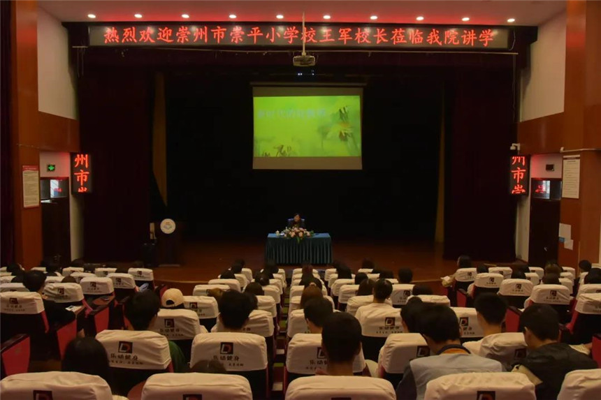 随后,崇州市崇平小学校长、四川文化传媒职业学院艺术设计系客座教授王军以清华附小校长窦桂梅“如何成为一名好老师”为讲座导入,以“让阅读架起未来的桥梁”为讲座主题,结合现实案例和自身多年的管理经验,系统讲述了阅读对于新时代的人民教师的重要性,从阅读的方法、以及如何选择阅读书籍等方面给同学们做了讲授。讲座最后,王校长引用菲茨杰拉德的话与大家共勉,“你学过的每一样东西,你遭受的每一次苦难,都会在你一生中的某个时候派上用场”。鞭策同学们要珍惜大学时光,努力提升专业能力和水平,提高自身综合素质,并勉励大家“幸福是奋斗出来的,奋斗的过程何尝不是一种幸福”,让大家努力成为一名幸福感十足的大学生。