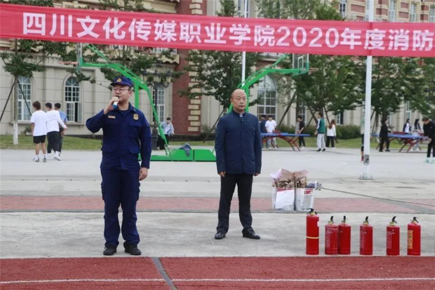 为加强我院全体师生消防安全意识和自防自救能力,以及对紧急事件的自我保护和防御能力。四川文化传媒职业学院绵竹校区于9月24日分别在二校区、三校区的操场同时进行了消防应急疏散演练。学院党委书记周世伟、执行院长罗琴、副院长谢桂兰、副院长罗江和院长助理陈雷出席演练,绵竹市消防站站长金睿来到现场进行讲解并对灭火实操进行指导。执行院长罗琴全程参与指导,并强调消防演练事关师生安全,一定要高度重视,认真听从消防官兵的指挥和引导。