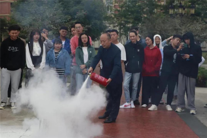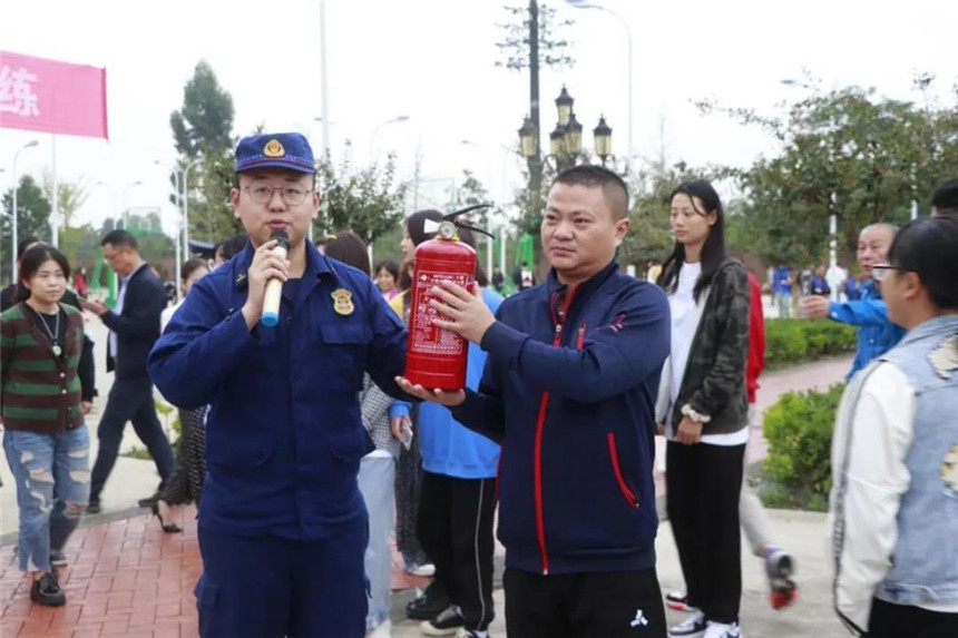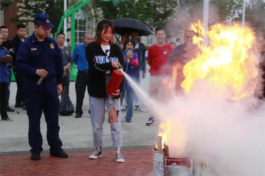随后,绵竹市消防站站长金睿为广大师生讲解了消防逃生常识和灭火器的正确使用方法,并让同学们体验使用灭火器灭火。