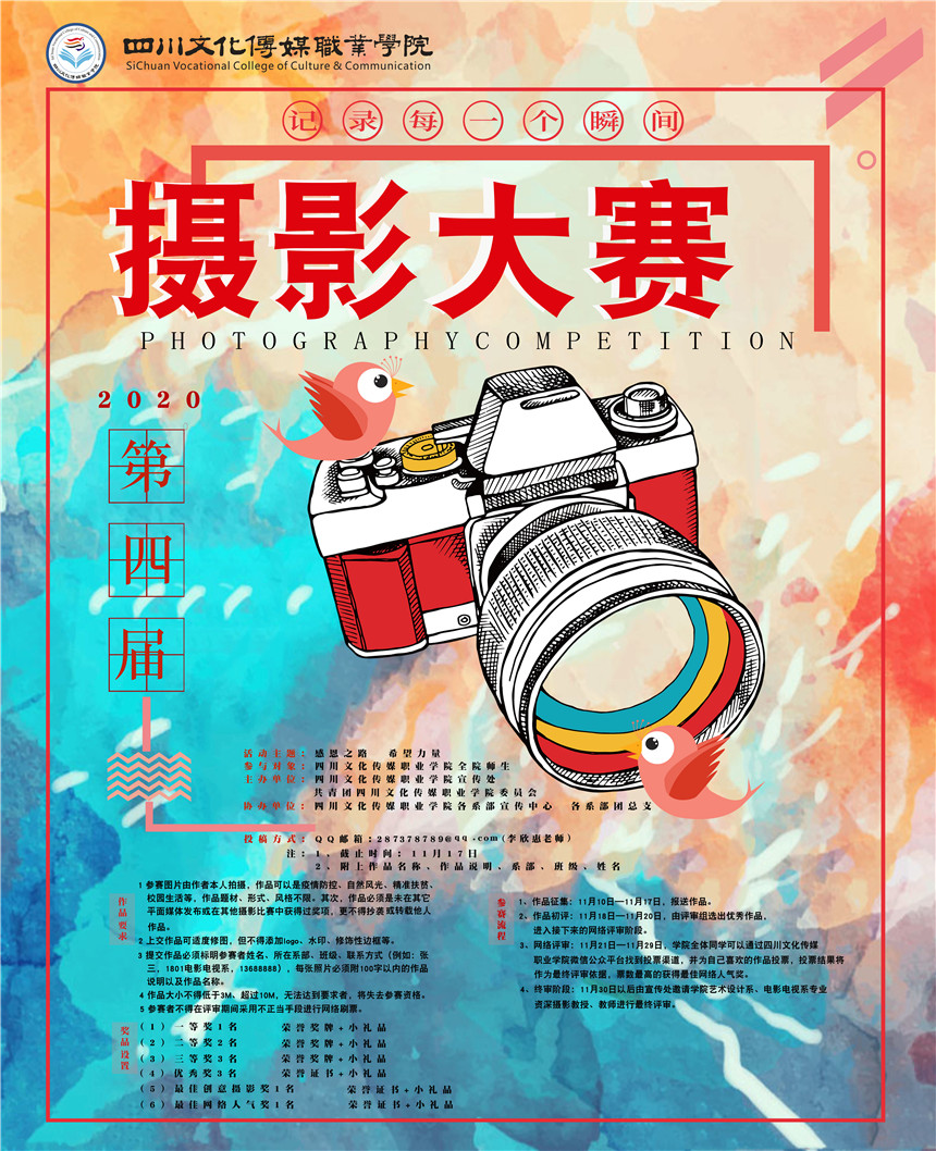4、终审阶段:11月30日以后由宣传处邀请学院艺术设计系、电影电视系专业资深摄影教授、教师进行最终评审。