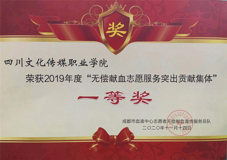 近日,四川文化传媒职业学院团委青年志愿者总队三名志愿者受邀参加由成都血液中心主办的2020年成都血液中心"爱成都迎大运·爱奉献促进步"志愿者培训总结联系会暨拓展活动。本次活动由近四百多名各高校志愿者团队代表以及社会无偿献血团体代表共同参加,四川文化传媒职业学院荣获2019年度“无偿献血志愿服务突出贡献集体”一等奖。