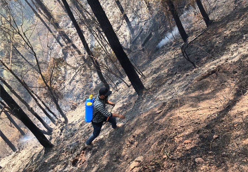 终于,经过消防队员一个晚上的持续救援作业,成功扑灭了200余米的火线,阻止了火势蔓延。大火熄灭后,不少枯木还在继续燃烧,这时如果再有大风吹,又会引发山火,所以马上清理仍燃烧的树桩、枯枝就显得迫在眉睫。由于火点在山上,大量的水上不来,只能用人工背水,扛水上去的方法,俄的子者主动承当起了帮助消防员装水运山上的工作。装水、扛水、运水,一系列工作下来,俄的子者得肩酸了、手麻了,自己却放心地笑了。