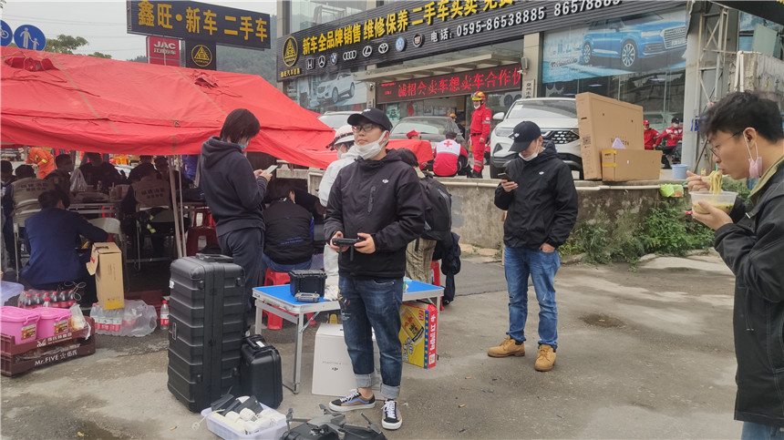 此时,白鑫所在的泉州大疆七海扬帆无人机科技有限公司距离事发地点约4到5公里,了解信息后,公司第一时间和负责救援的消防队取得了联系。“消防队是一直合作的客户,我们问到他们是否需要支持。”白鑫说。当晚,白鑫和同事到达了现场。