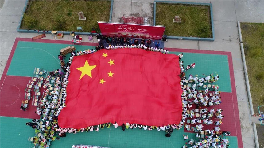 正值国庆,鲜艳的小国旗为中心校增添了浓浓的节日气氛,“乡村云课堂”教学成果展在大合唱《我和我的祖国》中接近尾声,各帮扶单位的驻村干部、中心校师生以及参加活动的全体人员齐声歌唱,歌声在中心校上空飘荡、余音袅袅。