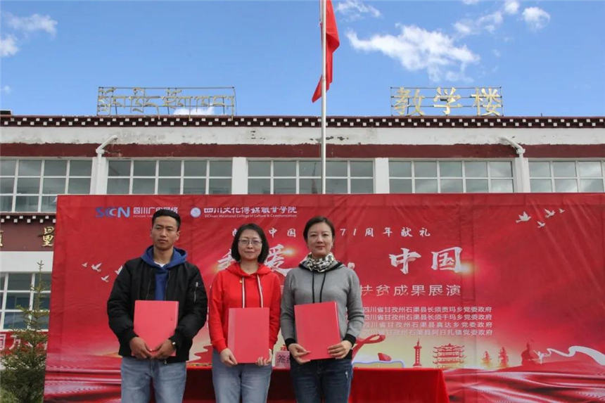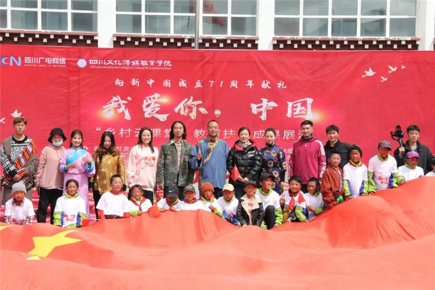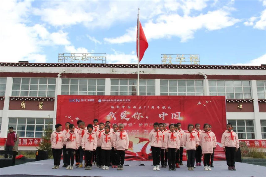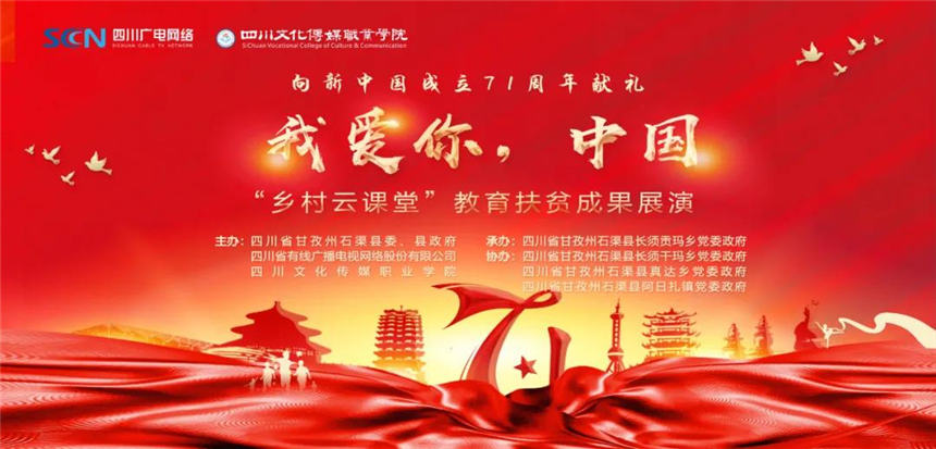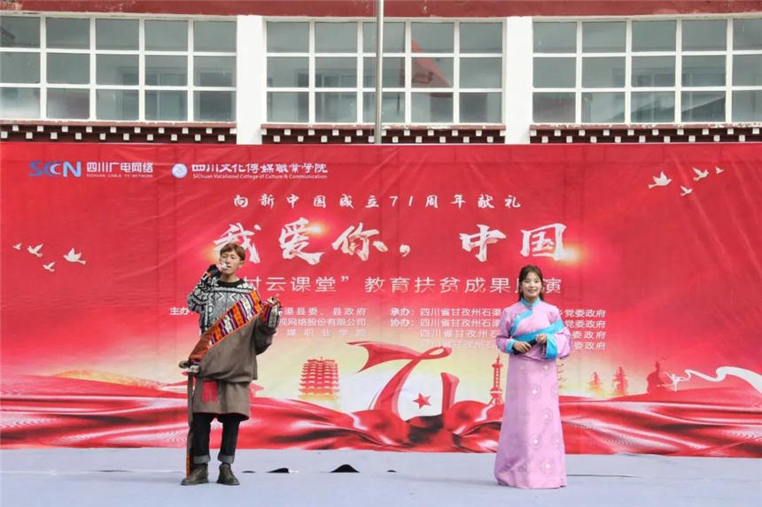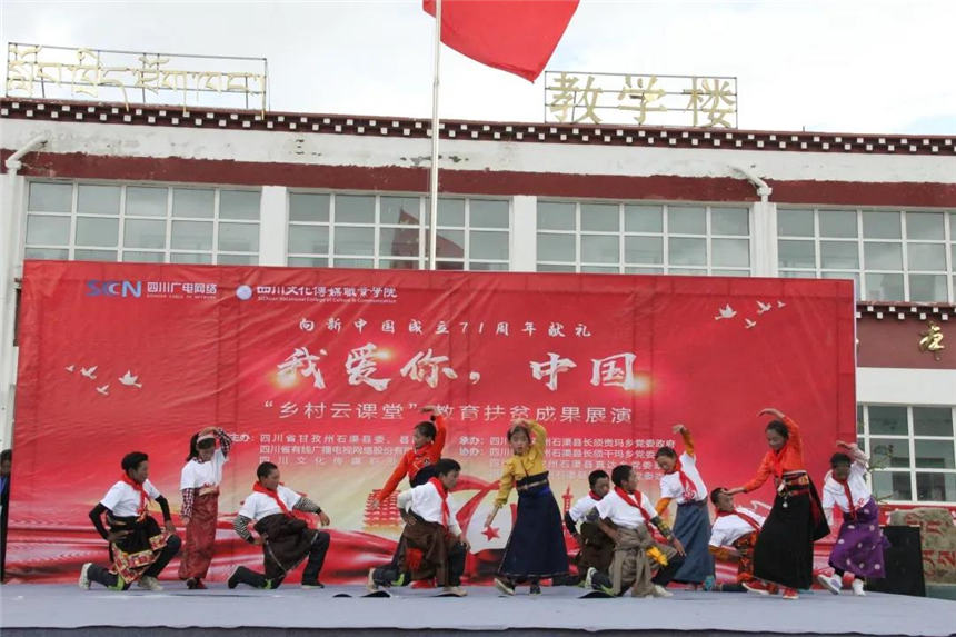 在远隔上千公里、海拔四千多米的高原上,一场特殊的展演,将成都和石渠县长须贡马乡连在一起。时值中秋,恰逢国庆,由四川文化传媒职业学院和四川省广电网络公司携手打造的“乡村云课堂”精准扶贫项目取得了阶段性的成功。“我爱你,中国——‘乡村云课堂’教育扶贫成果展”于9月28日上午10:00在长须贡马乡中心校如约而至,向祖国71华诞献礼!