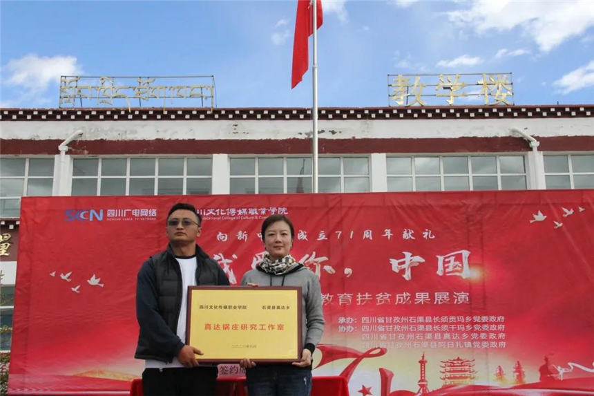 四川文化传媒职业学院与真达乡和阿日扎镇签订成立真达锅庄和石刻艺术研究工作室,由学院执行院长罗琴和阿日扎镇代表万育元、真达乡乡长尼玛曲批完成现场签约和授牌,学院音乐舞蹈系向真达乡乡长赠送《真达锅庄实录记谱》。