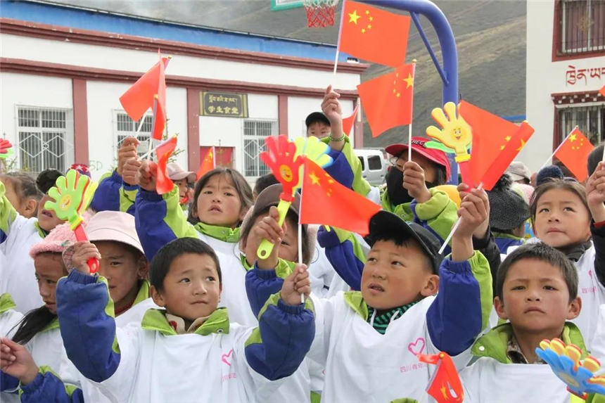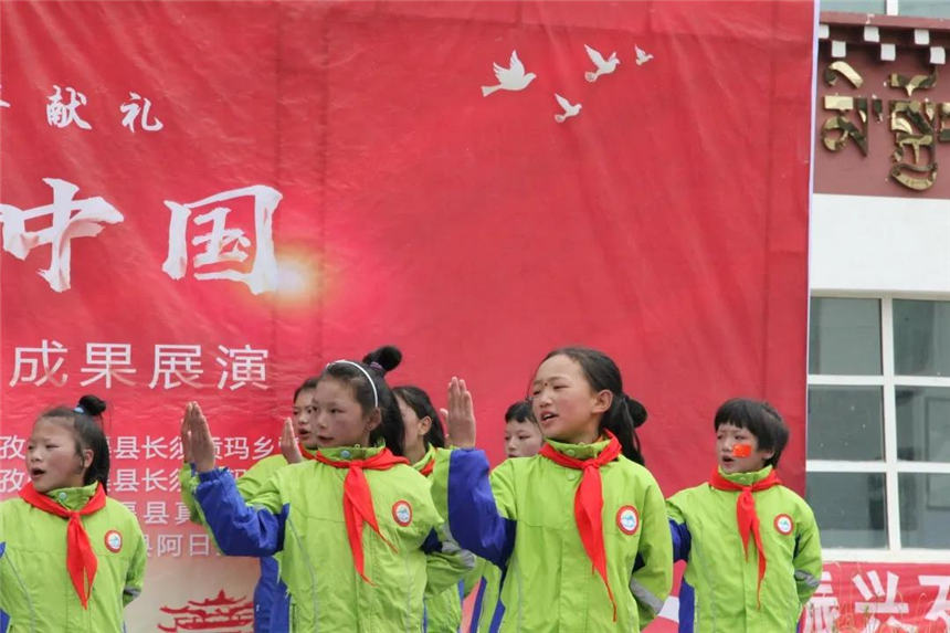 充满活力与朝气,小演员们每一个动作都认真到位,精准扶贫让党和国家的金色阳光在石渠高原上闪耀,照亮孩子们心中正在成长的梦想。