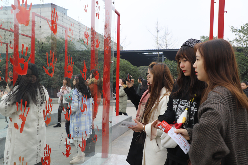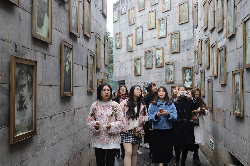 师生们首先来到了抗战博物馆系列展区前,这里有中流砥柱馆、正面战场馆等分馆以及抗战老兵手印广场。在中国老兵手印广场,5000余名抗战老兵的手模让人震撼。同学们静静地驻足、观看、拍照、凝眉沉思,默默向老兵们致敬。