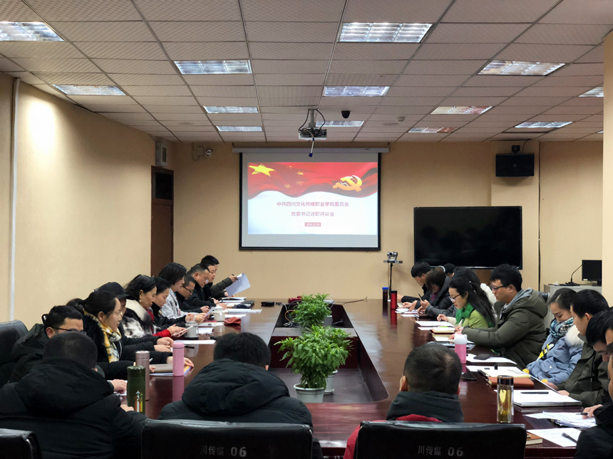 为认真贯彻落实省委《2018年度党委(党组)书记抓党建述职评议考核实施方案》和省委组织部、省委教育工委《四川省高校党建工作重点任务》的要求,近日,四川文化传媒职业学院结合学校实际,组织召开了党委书记抓党建述职评议会。党委书记谢桂兰,党委副书记、执行院长罗琴,党委副书记、副院长吕晓南出席会议,党委宣传委员罗江、党委组织委员陈雷、党委青年委员欧小凤、党委群工委员屠金权、党政办主任杨云、各党支部书记以及优秀党员代表参加会议。
