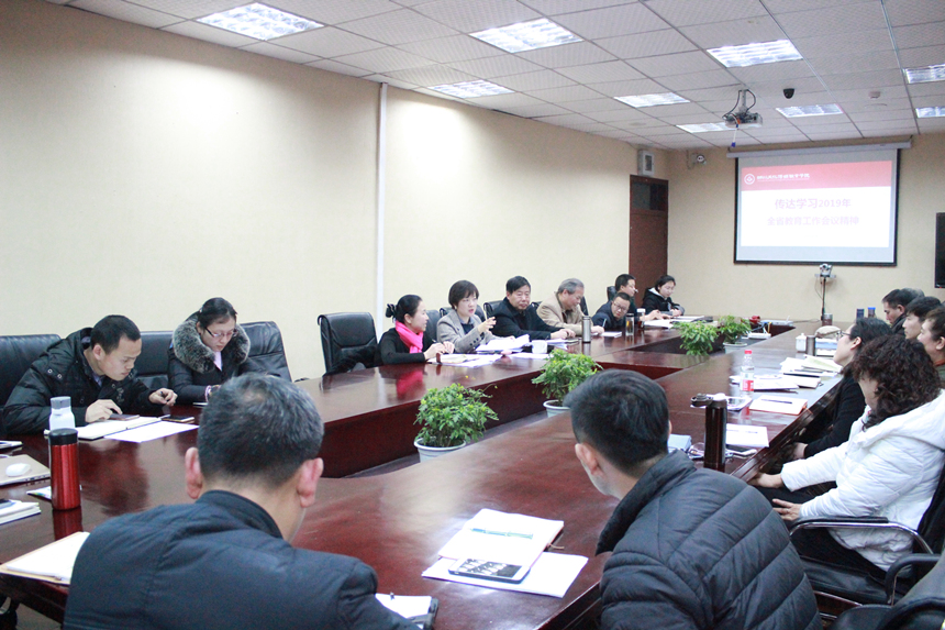 谢书记要求学院各部门要认真学习贯彻落实2019年全省教育工作会议精神和全省2019年教育工作要点,要深刻理解朱世宏厅长的重要讲话精神,要始终把培养德智体美劳全面发展的社会主义建设者和接班人作为根本任务,以高标准严要求全面加强学院教师队伍建设,把握新时代中国特色社会主义教育的本质,贯彻落实会议精神,不断办好人民满意的教育,不断开创新时代学院工作新局面。