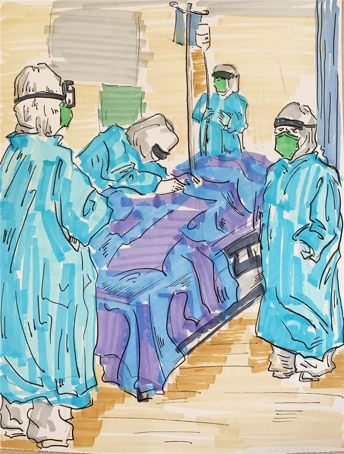 创意:医护工作者逆行而上,奔向疫情最前线,坚守岗位,尽绵薄之力支援同胞,用“中国速度”与疫情赛跑。