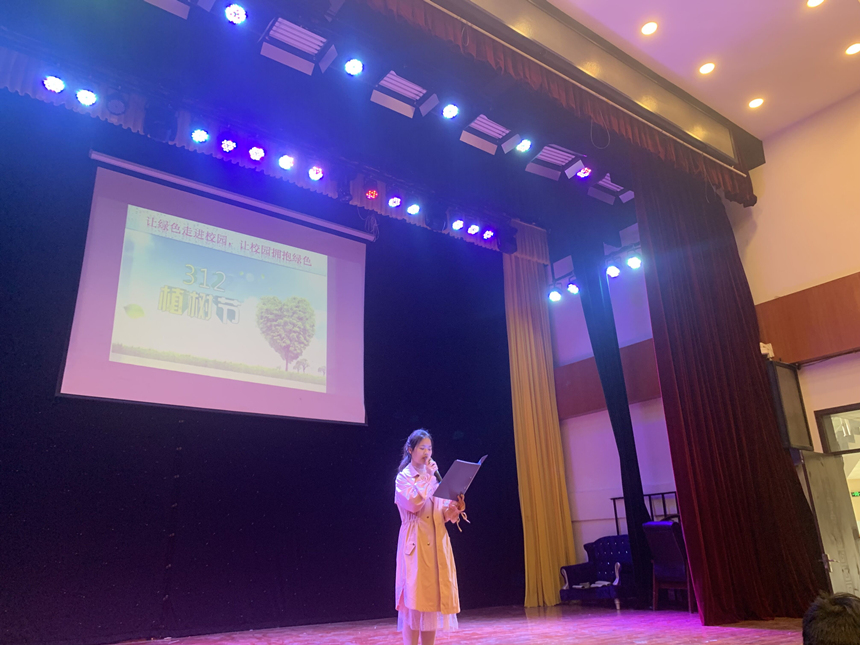 在活动开始前,由艺术团带来开场舞《且吟春雨》庆祝植树节的到来。随后学生代表上台带领全体师生庄严宣誓,践行低碳环保绿色生活,文传师生共同守卫绿色家园。