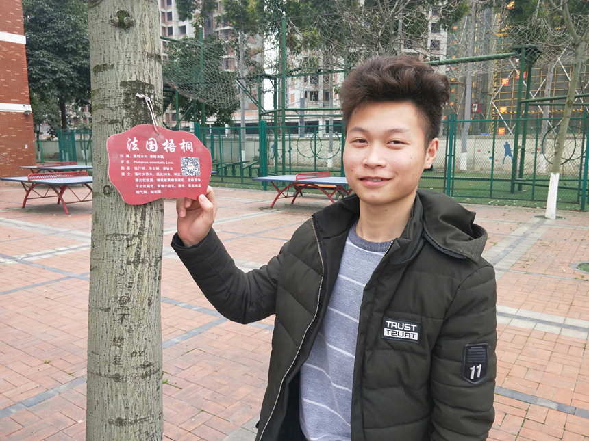 活动中,学生充分发挥想象力,将卡片设计成各式各样的形状,并在卡片上附上植物的相关介绍,挂在相应的绿植上,给学院内的绿植颁发“身份证”,此景成为学院内一道亮丽的风景线。