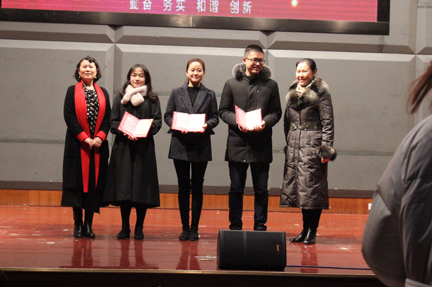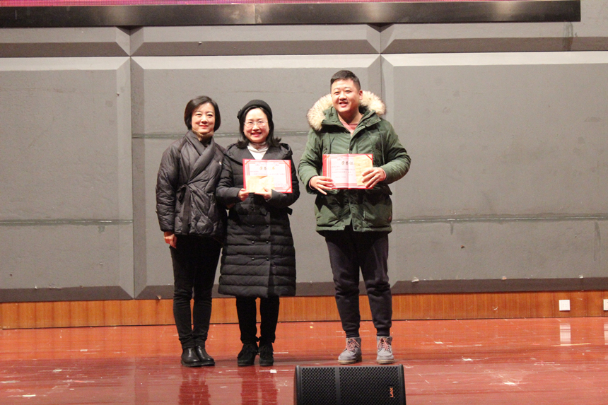 党委书记谢桂兰和副院长吕晓南为徐文艺、王蓉、宋木子颁发二等奖