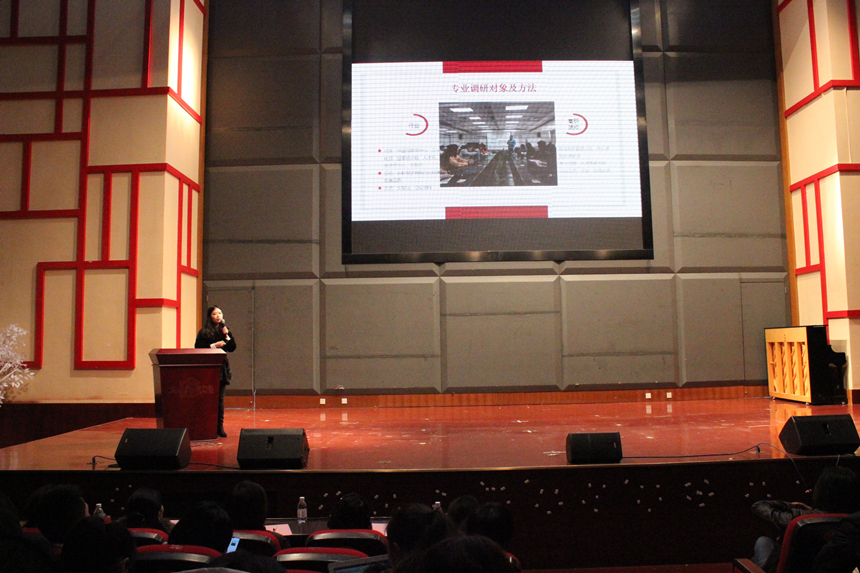 文化管理系电商教研室主任周婷老师做《电子商务》示范专业剖析。周老师从专业建设背景、专业建设基础和现状 、专业建设方案 、专业建设成效、专业建设特色 、存在问题和努力方向六个方面介绍了电商专业在专业人才培养目标定位、教学模式改进、课程体系优化及专业特色凝炼等方面所做的工作和取得的成绩。