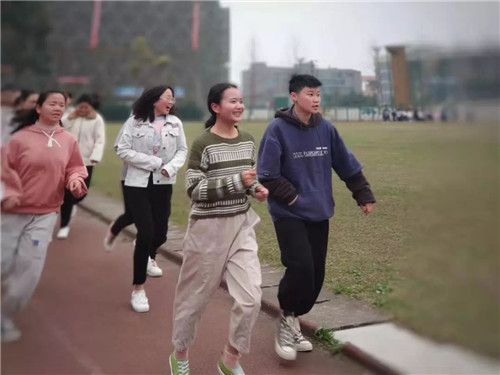 文传学子们在学院的操场上晨跑,用充满朝气的步伐跑出校园中最蓬勃的气象。