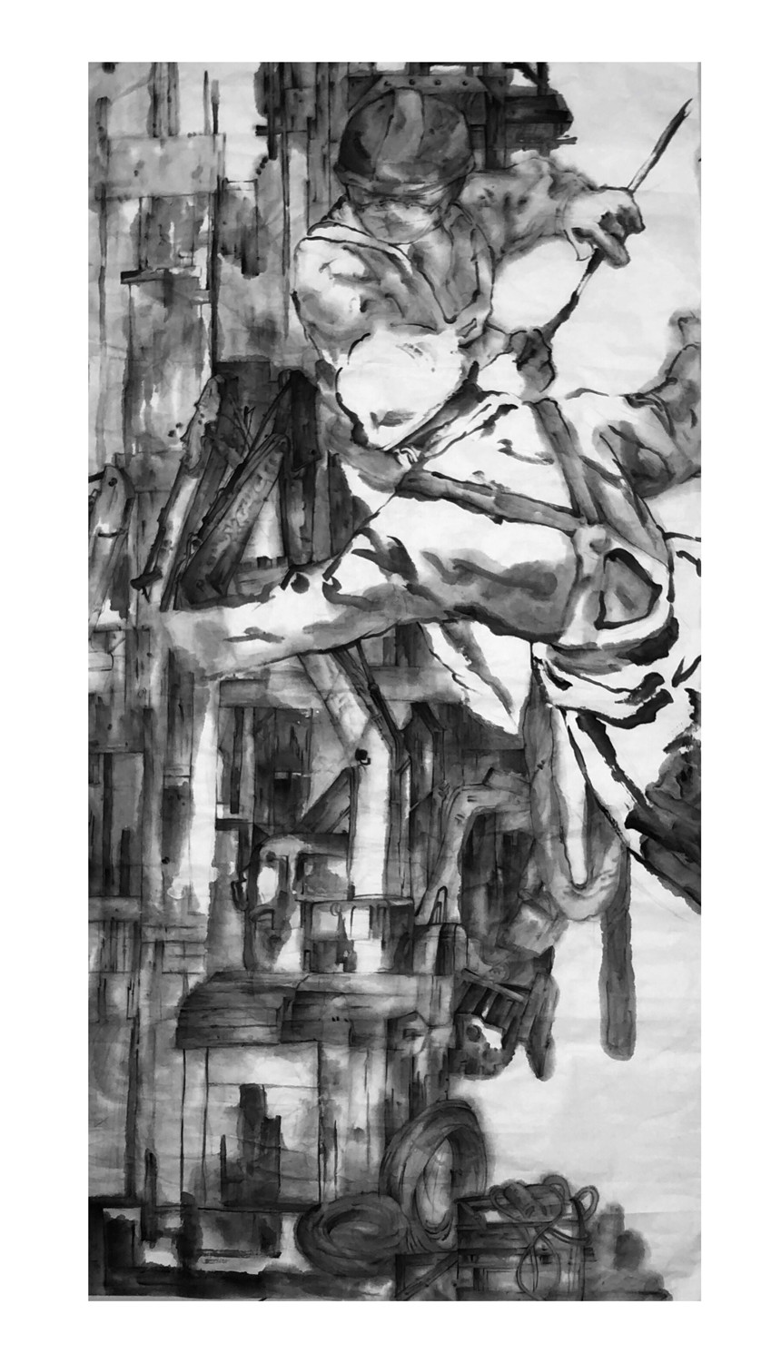 《争分夺秒》 敬业佳 纸本水墨 68*136cm