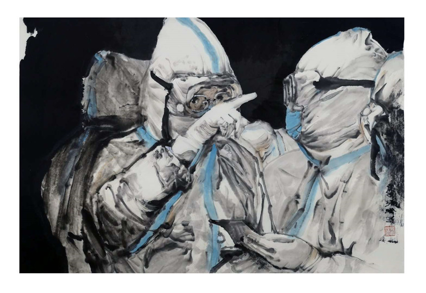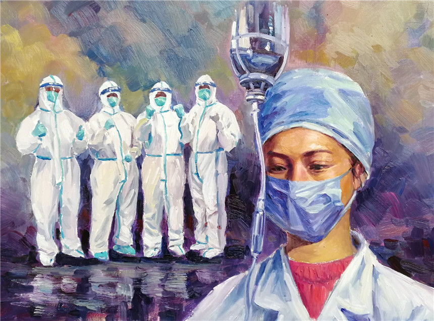 《致敬!白衣战士》 廖先进 油画 80*60cm