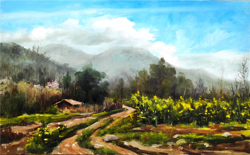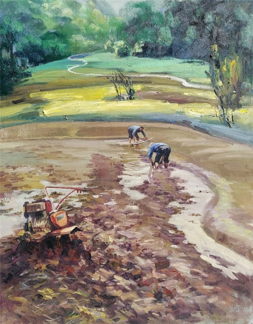 《春回大地、早日相聚》 吴奇睿 布面油画 40*50cm
