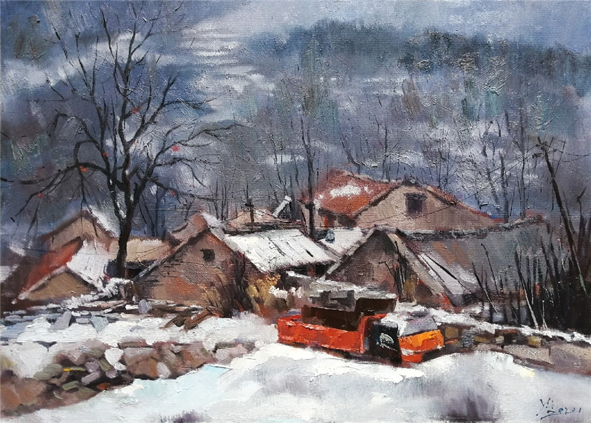 《瑞雪吉兆》 于兴财 布面油画 50*70cm