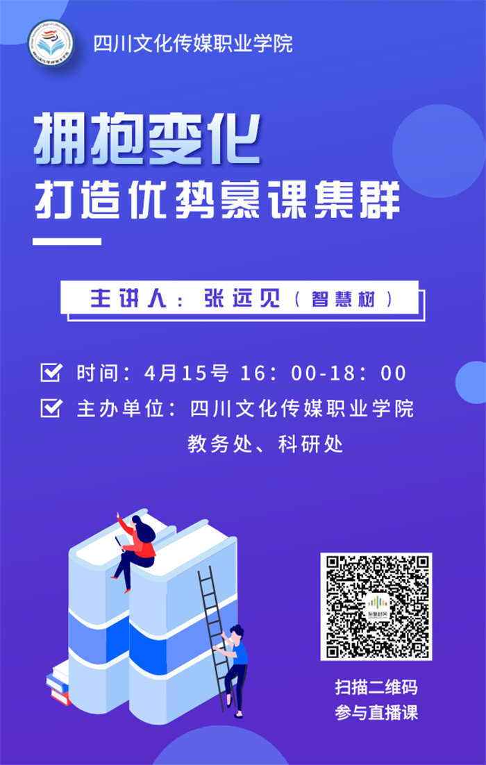 4月15日下午,四川文化传媒职业学院联合智慧树网开展在线精品课程建设主题讲座《拥抱变化,打造优势慕课集群》。本次讲座邀请智慧树网川藏区首席专家张远见老师主讲,全院共320余名专兼职教师在线参加讲座。
